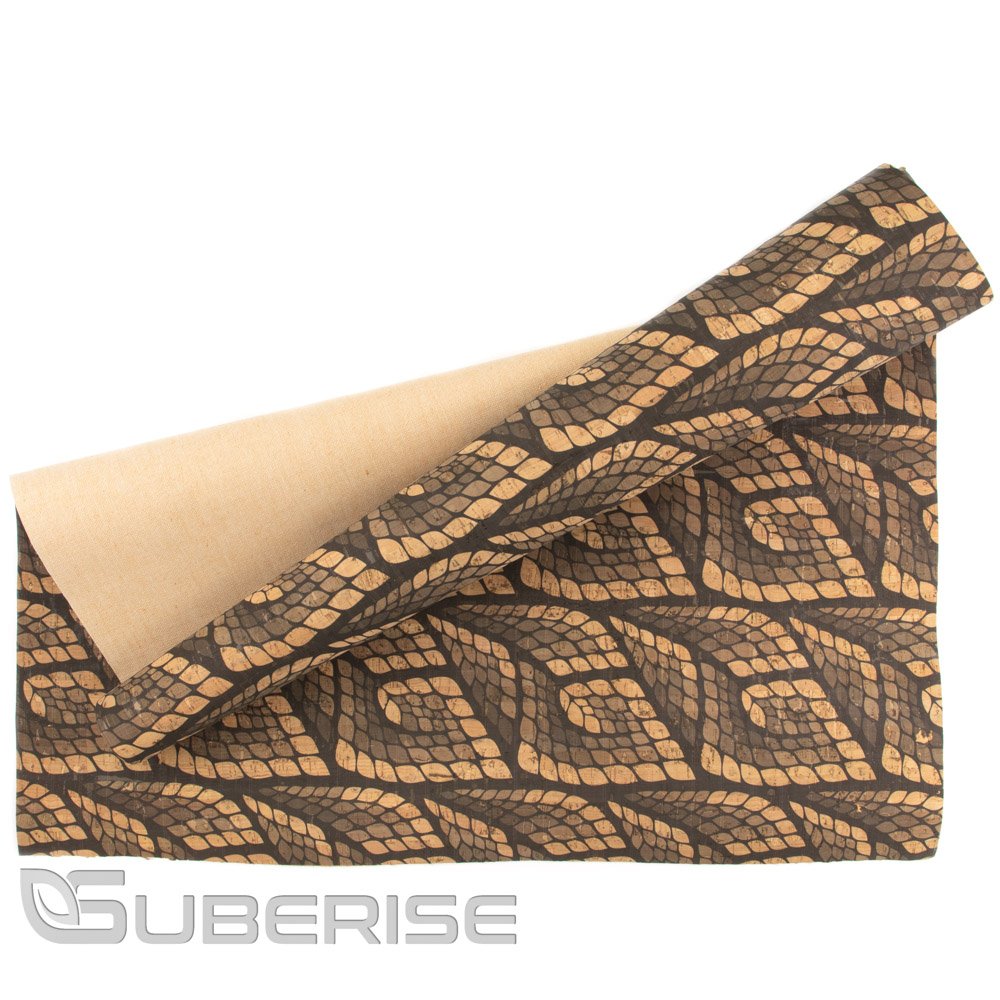SUBERISE Cork leather printing Mosaic leaves is an eco-friendly cork fabric from Portugal, perfect for sewing and DIY handcrafts. This material is ideal for production of shoes, upholstery, bags, purses, etc. You can sew it or glue to other materials and surfaces, as well as laser cut. For gluing we are recommending to use only water-based glues. Last but not least, check our brand Corklane to see what cork leather can be used for!