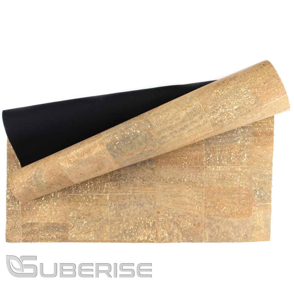 SUBERISE Cork leather Surface with gold is an eco-friendly cork fabric from Portugal, perfect for sewing and DIY handcrafts. This material is ideal for production of  shoes, upholstery, bags, purses, etc. You can sew it or glue to other materials and surfaces, as well as laser cut. For gluing we are recommending to use only water-based glues. Last but not least, check our brand Corklane to see what cork leather can be used for!